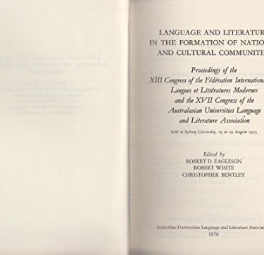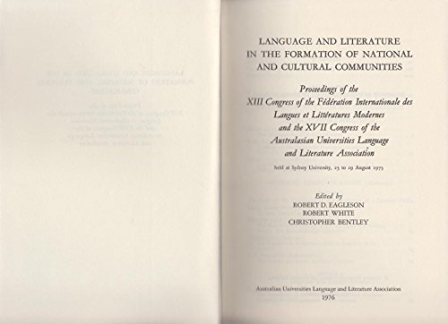 Language and Literature in the Formation of National and Cultural Communities Australasian Univ. Lang. & Lit. Assn., (c/o Dr Alan Corkhill, Department of German, University of Queensland, QLD 4072, Australia).