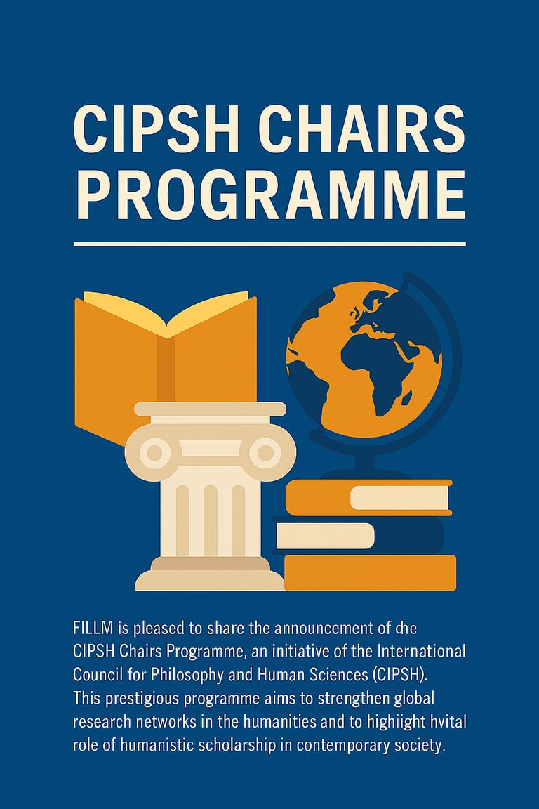 FILLM is pleased to share the announcement of the CIPSH Chairs Programme, an initiative of the International Council for Philosophy and Human Sciences (CIPSH). This prestigious programme aims to strengthen global research networks in the humanities and to highlight the vital role of humanistic scholarship in contemporary society.